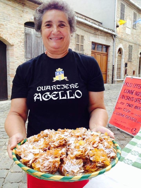 Immancabili le dolci sorprese delle donne agellane, un cult della golosità, della tradizione e dell’anima generosa del Quartiere: fin dal primo pomeriggio impastano e sfornano per presentarsi sorridenti con i loro prodotti , come la simpatica Giuseppina che interrompe le ferie per mettersi all’opera ed offrire soddisfatta la crostata tradizionale e non solo. Le dolci sorprese finiscono su una bancarella ricolma, tra preziosi  liquorini locali, tentatori irresistibili. Il Gufetto ammiccante invita, guarda e protegge e la pentola continua a bollire, quella delle idee.