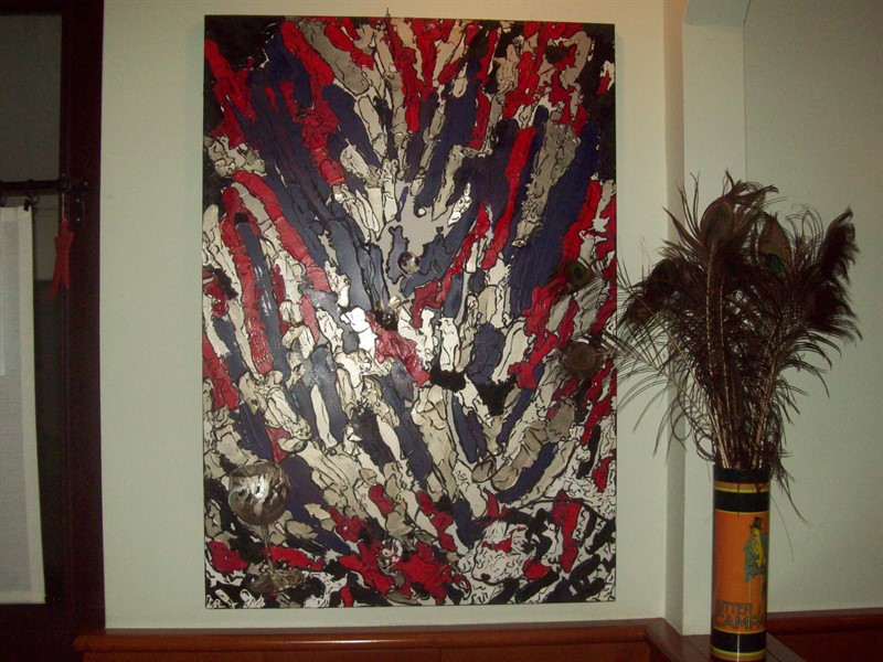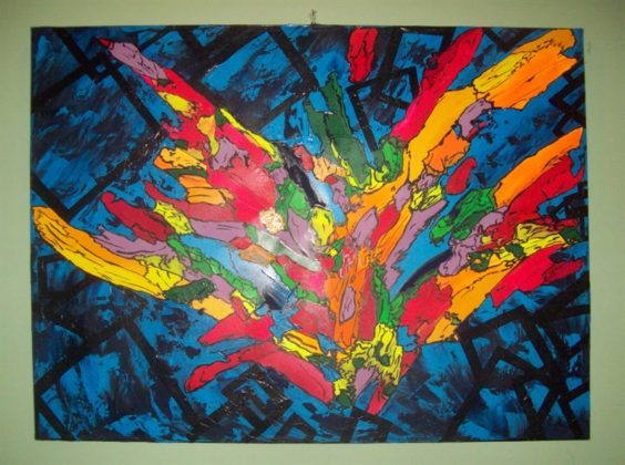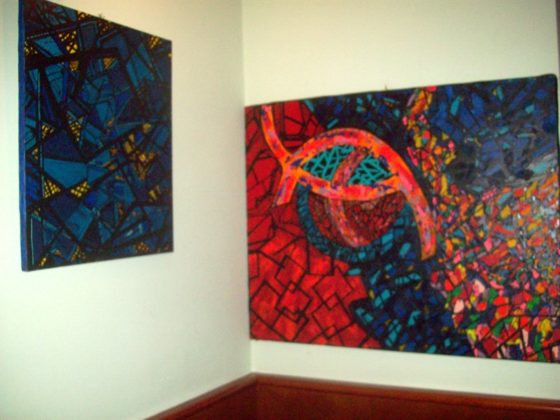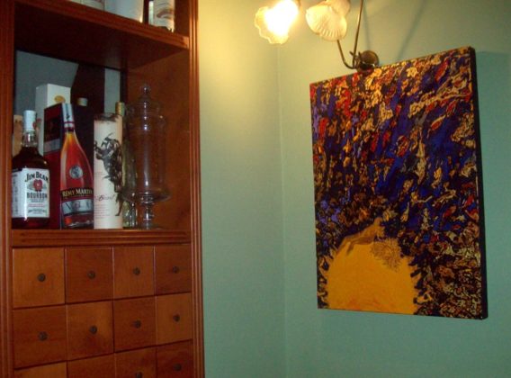 Tra le tinte, spiccano il rosso e il blu, come in un sogno ad occhi aperti, l’anelito ad una bellezza che poggia qua e là mentre le forme si stemperano in profili astratti, lasciati lì ad incontrate la nostra amicizia, a prestare intero il nostro cuore.