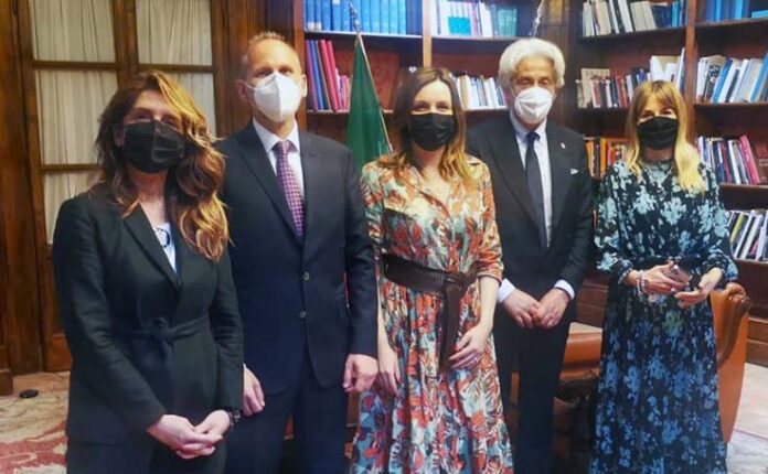MACERATA – Lo Sferisterio e il Macerata Opera Festival sono stati l’argomento centrale dell’incontro a Roma del sindaco di Macerata Sandro Parcaroli, dell’assessore regionale alla Cultura Giorgia Latini e di quello comunale Katiuscia Cassetta, oltre al sovrintendente Luciano Messi, con il sottosegretario al Ministero della Cultura Lucia Borgonzoni, che già aveva mostrato interesse per la manifestazione marchigiana in occasione della presentazione del programma 2021. Al sottosegretario sono stati consegnati alcuni documenti fra cui il modello operativo per la gestione degli spettacoli in tempi di pandemia (tra i primi a essere elaborati già nel 2020 e aggiornato alle ultime disposizioni), un dossier sulle attività del Centenario e su quelle che vengono svolte annualmente (dai percorsi di accessibilità al progetto speciale per il centenario) e un approfondimento sul loro impatto socio-economico sul territorio (coefficiente di moltiplicazione del valore di 10,4). Inoltre, sono state segnalate all’attenzione del sottosegretario Borgonzoni le linee di approfondimento scientifico che lo Sferisterio sta sviluppando in collaborazione con gli Atenei delle Marche (Ancona, Camerino, Macerata, Urbino) e la Regione Marche, finalizzate in particolare alle misurazioni dell’efficacia delle procedure di sicurezza, del benessere percepito dagli spettatori e dell’impatto socio-economico.