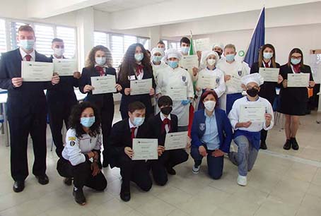 SAN BENEDETTO DEL TRONTO – Anno scolastico decisamente effervescente per l’Istituto Alberghiero Buscemi di San Benedetto, grazie all’entusiasmo e al dinamismo del dirigente scolastico, prof.ssa Manuela Germani, e di un gruppo “spumeggiante” di docenti. Nonostante le difficoltà relative l’emergenza pandemica, l’Istituto sambenedettese si è imposto per ben due volte in contest scolastici a livello nazionale e promossi dall’Unione Europea. Proprio al termine dell’anno scolastico l’Ufficio del Parlamento Europeo in Italia ed Euroscola incoronano l’Istituto Buscemi primo classificato del contest “Ribelliamoci all’odio”, punto di arrivo del progetto Epas (Scuola Ambasciatrice del Parlamento Europeo) che ha visto coinvolti gli studenti delle classi terze e quarte dell’Istituto.