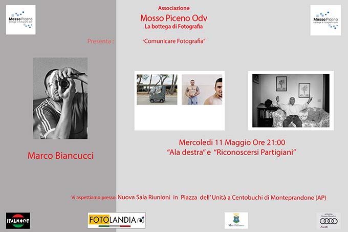 MONTEPRANDONE – Ultimo appuntamento con “Comunicare fotografia”, la rassegna dedicata al mondo della fotografia composta di quattro incontri tenuti da fotografi professionisti, organizzato nell’ambito del corso di fotografia realizzato dall’associazione “Mosso Piceno – La bottega di fotografia”, con il patrocinio del Comune di Monteprandone. Mercoledì 11 maggio sarà ospite Marco Biancucci. Nel 2003 si laurea in Scienze della Comunicazione presso l’Università di Macerata, con una tesi in Semiotica Applicata sul cinema muto. Dal 2005 diventa fotografo professionista, lavorando prevalentemente nel settore commerciale e collaborando con importanti aziende. Per 3 anni segue come fotografo ufficiale il festival Risorgi Marche. In parallelo si occupa di progetti di fotografia sociale e reportage. Ha pubblicato le sue foto nel lavoro collettivo “Solchi. Solchi. Uomini, donne, terre e animali” sulla mezzadria nella Marche del sud. Nel 2019 ha realizzato “Ala Destra” un libro fotografico nato dentro il carcere di Ascoli Piceno. Sta lavorando ad altri 2 libri, uno insieme all’antropologo Gabriele Mina sul movimento chiamato “Costruttori di Babele” ed un altro legato al racconto dei ragazzi disabili ospiti di alcuni centri. La rassegna si tiene nella nuova sala riunioni, in piazza dell’Unità a Centobuchi. Inizio incontri ore 21. Ingresso libero, con green pass.