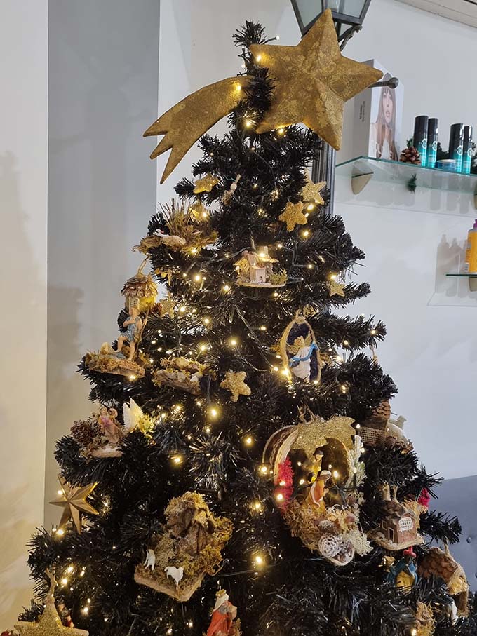 SAN BENEDETTO DEL TRONTO –  Natale è anche sinonimo di creatività. Ne sono chiara dimostrazione non solo le luminarie che rendono più belle la città, ma anche la miriade di addobbi nelle case, all’interno dei negozi, persino sui balconi e sulle fineste delle abitazioni. È un modo per testimoniare la propria gioia nei confronti di un periodo dell’anno in cui tutto sembra “sospeso” dalla quotidianità, un periodo in cui aleggia la speranza che le cose possano finalmente migliorare. Ognuno porta con sé qualche desiderio in fondo al cuore, molti si lasciano sopraffare dalla frenesia degli acquisti, altri invece preferiscono i ricordi. Ci sono poi persone che amano vivere questi giorni nell’intimità familiare, altre che si lasciano andare ai ricordi. Ad alcuni il Natale mette tristezza, ad altri allegria. Ognuno lo vive a proprio modo. Ma un fatto è certo: tutti, o quasi, si cimentano nella realizzazione del tradizionale albero di Natale e del Presepe. A noi del Graffio durante le festività piace andare alla scoperta dello spirito creativo del Natale, ed anche quest’anno abbiamo trovato un albero davvero molto particolare che si trova all’interno della Parrucchieria Frattini, in via Ugo Bassi. L’albero in questione è un autentico capolavoro in quanto è composto da tante piccole opere d’arte realizzate dalla grottammarese Daniela D’Ercoli che, in ognuna di esse, ha dato vita a tante piccole Natività a cui fanno da corollario scenari tipici del Presepe. In pratica un Presepe completo “dislocato” nelle sue varie parti in tutto l’albero di Natale, volutamente scuro, per dare risalto ai particolari delle splendide installazioni. Il risultato è magnifico e testimonia la straordinaria manualità e bravura della signora Daniela che, durante la pandemia, ha avuto l’opportunità di cimentarsi nel suo hobby preferito realizzando, con infinita cura e pazienza, le numerose installazioni che rendono questo albero unico nel suo genere. «Daniela può essere considerata una vera artista e quest’anno, in segno della sua amicizia, ci ha consentito di esporre un albero di Natale davvero molto particolare» spiegano Luciano e Lina Frattini, sottolineando che in fondo è possibile realizzare autentici capolavori utilizzando materiali “poveri” che diventano “preziosi”, in questo caso, grazie all’abilità di Daniela. Un plauso dunque alla bravissima signora D’Ercoli, ma anche alla famiglia Frattini che ogni anno accoglie i clienti con alberi veramente innovativi, sempre posizionati accanto ad un originale lampione a dimensione naturale che è diventato la caratteristica del negozio. Tra i tanti ricordiamo “l’albero ecologico” realizzato interamente in cartone e con materiale riciclato; “l’albero sotto sopra”, un enorme abete che spuntava dal soffitto al posto del lampadario, l’albero “spagnoleggiante” tutto nero allietato con una infinità di rose rosse che è stato un po’ pioniere dell’idea di sostituire le tradizionali palline con i fiori. E tanti alberi ancora verranno, con l’augurio di un felice Natale.