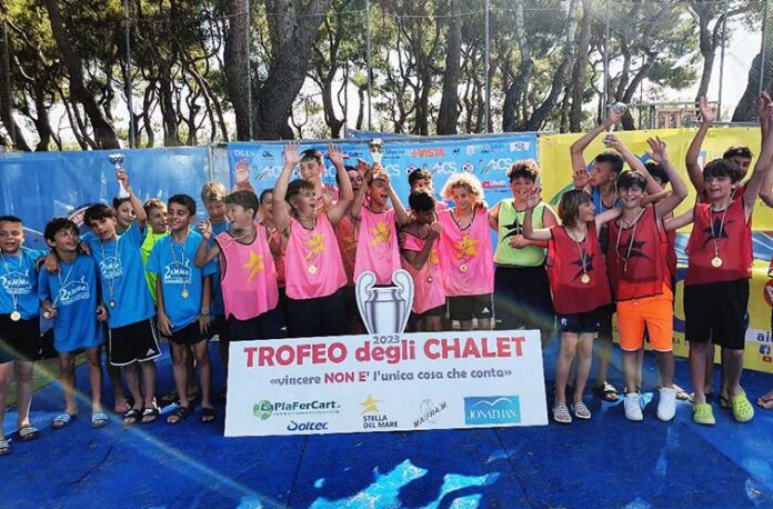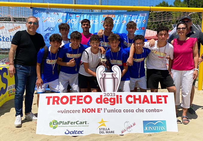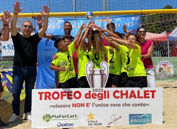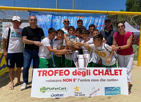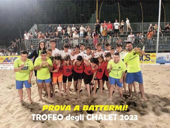 SAN BENEDETTO DEL TRONTO – Va in archivio con un grande successo il Trofeo degli Chalet 2023 di beach soccer, al quale hanno preso parte più di 200 ragazzi, distribuiti nelle venti squadre che hanno aderito alla manifestazione, che ha rivisto la sua luce dopo l’ultima edizione del 2015 (dal 2006 a quella appena conclusa si sono svolte otto edizioni). Gli chalet che hanno conquistato il gradino più alto del podio, acquisendo il diritto di partecipare alle finali nazional del Summer Tour Aics in programma ad Ostia nel mese di agosto, sono: Chalet degli Angeli (Under 11), Chalet Brasil (Under 13), Chalet Claudia (Under 15) e Oasi Beach Roma (Under 17). Nell’arco dei tre giorni di gara sono state disputate ben 45 partite nella nuova beach arena allestita al campo Rodi, sempre gremita di pubblico appassionato che ha seguito passo dopo passo l’intera manifestazione. Perfetta l’organizzazione da parte di Sport in Tour Aics, coadiuvata dalla società sambenedettese Stella del Mare.