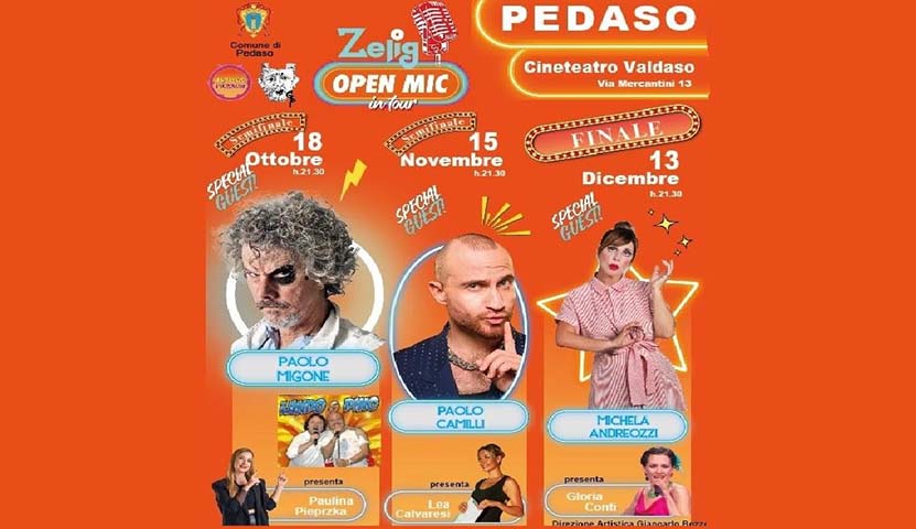 PEDASO – Svelata la terza edizione dello Zelig Open Mic, contest dedicato al panorama emergente comico italiano, che farà tappa al Cineteatro Valdaso nell’imminente autunno pedasino. Si parte con la prima semifinale il 18 ottobre con Paolo Migone, un veterano della comicità italiana; una serata inaugurale classica, che vedrà protagonista anche il duo marchigiano Lando&Dino. La seconda semifinale, prevista il 15 novembre, vedrà ospite il poliedrico artista Paolo Camilli, tra i comici più amati dai giovani nel mondo web, grazie ai duetti social con la blogger food Benedetta Rossi e divertenti parodie tormentone, su tutte quelle dedicate ad Ilary Blasi e Annalisa. Data della finalissima il 13 dicembre nella quale si decreterà il cabarettista che accederà allo Zelig, tempio della comicità italiana. Ospite della serata conclusiva sarà l’attrice Michela Andreozzi, ex Gretel & Gretel, vanta un’esperienza teatrale, televisiva, cinematografica nel mondo della fiction italiana, al fianco di Gigi Proietti, Max Tortora, Maria Grazia Cucinotta e Rocco Papaleo. Le serate verranno condotte dalle madrine Paulina Pieprzka, Lea Calvaresi e Gloria Conti che accompagneranno il pubblico al voto in sala, mentre è affidato ad Emily Verdecchia il neo ruolo di social voice, per avvicinare il follower a vivere la kermesse, con aneddoti e curiosità dal back stage. Coinvolta anche la professionalità delle seguenti scuole coreografiche del piceno: Ananke diretta da Amanda Trulio, Julie Ballet diretta da Julie Spurio e scuola danza Compagnia del Fiore di Anna Sala.