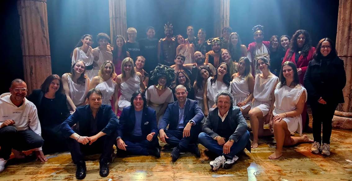 GROTTAMMARE – Un’opera moderna e inedita nata dalla creatività e dal talento della compagnia marchigiana Ceneri d’Arte, con testo e regia di Simone Brenno Rossetti. Lo spettacolo “Medusa – L’inganno degli dèi”, andato in scena sabato 18 aprile al Teatro delle Energie di Grottammare, ha rivisitato il mito classico greco, trattando temi attuali come la violenza sulle donne, attraverso musiche originali, scenografie surreali ed eccelsa sincronia nei tempi di scena. Giuseppe Cameli, a nome dell’Artistic Picenum, afferma: «Concludiamo gli appuntamenti della nostra primavera 2026. Con coraggio e spirito di sacrificio abbiamo cercato di proporre novità artistiche, puntando sempre sul talento del nostro prezioso territorio. Ringraziamo tutte le personalità a noi vicine che ci hanno donato forza e maturità per vivere e raccontare il terzo settore piceno». Presenti all’evento il sindaco di Grottammare Alessandro Rocchi, il vicepresidente del consiglio regionale Enrico Piergallini, Raffaella Spettoli della Commissione Pari Opportunità della Regione Marche. Alla compagnia è stata donata un’opera del progetto artistico Caritas, a cura di Patrizio Moscardelli.
