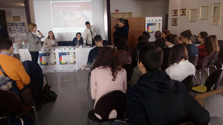 Gli allievi del Buscemi hanno seguito con interesse la relazione delle consulenti Eures della Germania, ponendo anche alcuni quesiti su aspetti tecnici e normativi riguardanti l’ingresso nel sistema lavorativo tedesco. Non è mancata una fase pratica con colloqui orientativi finalizzati a valutare la conoscenza delle lingua, le motivazioni dei giovani candidati e la raccolta dei curriculum vitae. La manifestazione ha visto anche la presenza di numerosi utenti interessati, in possesso dei requisiti richiesti, che hanno avanzato la propria candidatura per lavorare, fin da subito, all’estero.