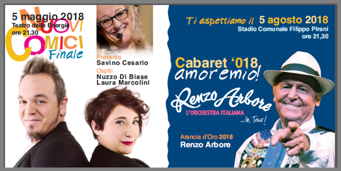 Come annunciato nei mesi scorsi, ragioni logistiche (il Parco delle Rimembranze sede della manifestazione non è utilizzabile a causa di lavori edili all’edificio scolastico attiguo) hanno portato a modificare il format tradizionale del Festival, che ha sempre avuto una avvio in primavera, con le selezioni degli aspiranti concorrenti, e due serate ad agosto, per eleggere il cabarettista vincitore dei nuovi comici e consegnare il premio alla carriera Arancia d’oro a personalità dello spettacolo.
