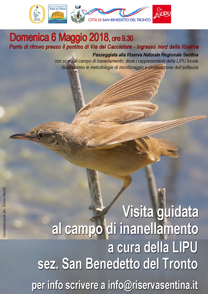 SAN BENEDETTO DEL TRONTO – In queste settimane di intenso passaggio migratorio dell’avifauna, la Riserva Sentina è il luogo ideale per praticare il birdwatching. A tal proposito, domenica 6 maggio avrà luogo una visita guidata nell’area protetta, proprio sul filo conduttore dell’avifauna. In particolare verrà dedicato ampio spazio ad assistere alle procedure di monitoraggio dell’avifauna tramite la tecnica dell’inanellamento, in corso di svogimendo da parte della LIPU, delegazione di San Benedetto del Tronto. Gli esperti ornitologi spiegheranno ai presenti curiosità, dettagli scientifici e guideranno al riconoscimento di alcune specie. L’appuntamento è quindi per domenica 6 Maggio, alle ore 9,30, presso l’accesso nord della Riserva, in via del Cacciatore.