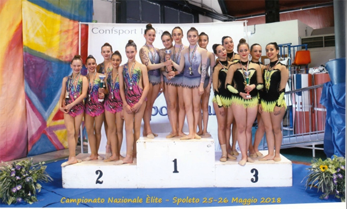 SAN BENEDETTO DEL TRONTO – Ottimi risultati per le atlete della Progetto Ritmica di San Benedetto al Campionato Nazionale Confsport Élite e Granprix, svoltosi a Spoleto. Due titoli italiani, due medaglie d’argento, due terzi posti e diversi piazzamenti sono il bottino di questa edizione del campionato tricolore che ha visto la partecipazione di oltre cinquanta società, provenienti da tutta Italia. Nel dettaglio, la società sambenedettese ha trionfato nella categoria Coppia con palla e fune grazie all’ottima esibizione di Giorgia Picciola e Simona Turbacci e nella categoria Squadra fune-cerchio con Vanessa De Angelis, Francesca Spina, Elena Solustri, Martina Filippoli e Annalaura Filippoli). Piazza d’onore per Giulia Marsili al cerchio e Sara Mascitti alle clavette, mentre Valentina Sassanelli ha conquistato la medaglia di bronzo alla fune, così come il terzo posto lo ha conquistato anche la Squadra palla-nastro (Jodie Capriotti, Chiara Velenosi, Michela De Angelis, Elisa Oddi e Maria Vittoria Di Donato). Podio sfiorato per Antinisca Travaglini, quarta alla fune e Alessia Caglio che ha conquistato al cerchio la medesima posizione al cerchio. Nella specialità delle clavette, inoltre, Nicole Corradetti è giunta quinta e Sofia Brutti ottava. Solo decima la Squadra Granprix, composta da Sara Mascitti, Claudia Cieri, Chiara Andreoni, Miriana Micucci e Maria Vittoria Di Donato) a causa di una sfortunata perdita della palla. Gli ottimi risultati ottenuti dalle atlete della Progetto Ritmica fanno ben sperare per il futuro, e premiano l’ottimo lavoro delle tecniche Margarita Ashchenkova, Silvia Capacchietti, Inna Reshetnyak e di tutto lo staff societario. Un progetto sempre più vincente, quello di Progetto Ritmica.