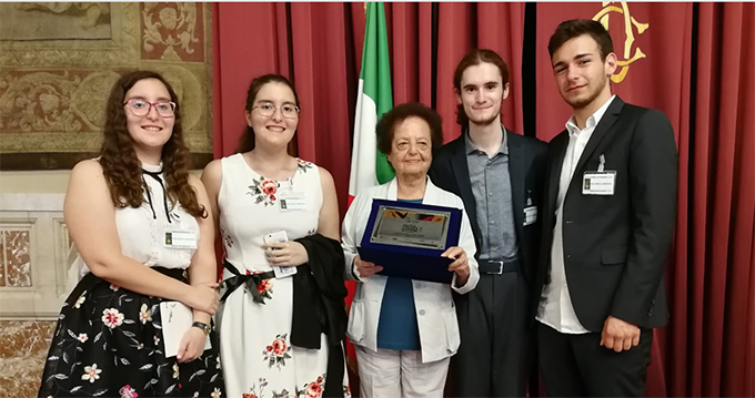 SAN BENEDETTO DEL TRONTO – Rinnovato, lunedì 11 giugno a Roma presso Palazzo Montecitorio, il legame che unisce il Premio Strega e il Liceo Scientifico Statale “B.Rosetti” di San Benedetto del Tronto. L’occasione ufficiale è stata la cerimonia di proclamazione del vincitore del Premio Strega Giovani 2018, Lia Levi. A rappresentare il Liceo Rosetti, che vanta una collaborazione pluriennale con la Fondazione Bellonci, sono giunti a Roma quattro studenti, Claudio Benigni (4 F), Chiara Candidori, Sofia Candidori e Stefano Straccia (4 E), accompagnati dalla docente referente, la professoressa Adelia Micozzi. Tutti gli studenti fanno parte, con altri, della Giuria del Premio Strega Giovani e del Club dei lettori del Rosetti, che per la prima volta e unici in Italia hanno svolto questa attività come Alternanza scuola lavoro. Alla presenza della vicepresidente della Camera, Maria Edera Spadoni e di tutti gli autori concorrenti, è stata proclamata vincitrice con 65 voti la scrittrice Lia Levi con il romanzo Questa sera è già domani, edizioni e/o.