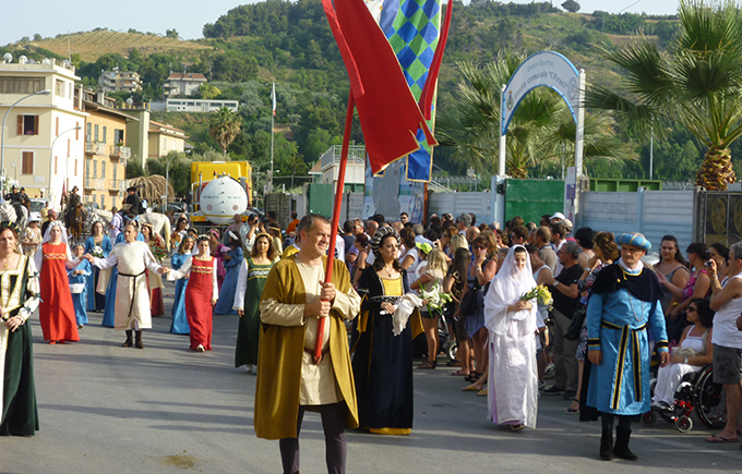 GROTTAMMARE – A pochi giorni dall’apertura della Sacra 2018 – il 23 giugno, con l’annuncio dell’araldo – l’Ufficio Cultura convoca i figuranti allo stadio comunale. Venerdì prossimo, 15 giugno, alle ore 21, sono in programma le prove generali in costume del corteo storico del primo luglio. Intanto, questa mattina, una delegazione grottammarese ha partecipato all’Udienza generale di Papa Francesco in Vaticano, per la benedizione del gonfalone della Sacra 2018, recentemente restaurato. Nel corso dell’incontro, verranno messi a punto gli ultimi dettagli della sfilata storica, che rappresenta l’evento principale di questa edizione della Sacra di Grottammare: verifica dei costumi e degli eventuali accessori a corredo, organizzazione dei gruppi secondo il protocollo della sfilata, definizione della scaletta preparatoria al corteo che, date le dimensioni (sarà composto da 700 persone tra figuranti e animatori professionisti), inizierà a formarsi  nel pomeriggio del primo luglio, appunto secondo un ordine prestabilito.