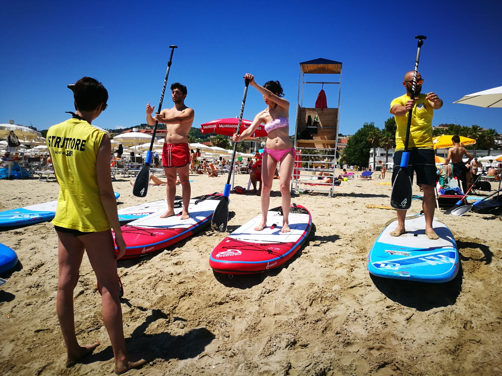 «È uno sport semplice, divertente e accessibile a tutti, senza limiti di età e forma fisica. Inoltre è di facile apprendimento e capace di regalare grandi emozioni.Uno dei numerosi vantaggi di questa disciplina è certamente quello di spostarsi con un’attrezzatura leggera e poco ingombrante, utilizzabile praticamente su qualsiasi specchio d’acqua» spiegano gli istruttori Carlo Zippilli, Martina Spinucci e Giampaolo Spinucci, che aspettano tutti gli appassionati del settore e quanti vorranno avvicinarsi a questo sport, domenica 1 luglio alle ore 10, nella “spiaggia” tra le concessioni Medusa(n.6) e Conchiglia (n.7), dove è prevista una esibizione amatoriale di Sup-Stand Up Paddle per uomini, donne e bambini, seguita da un rinfresco beneaugurale fino ad esaurimento scorte.
