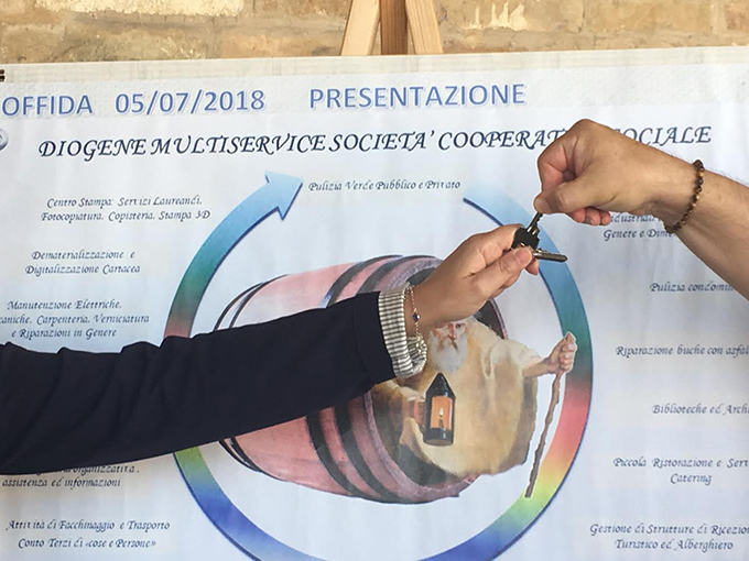 OFFIDA – Il Comune di Offida ha concesso un locale dell’ex Istituzione Sieber, in comodato d’uso, alla nuova Cooperativa Diogene Multiservice, creata da un gruppo di disoccupati. «Abbiamo voluto contribuire come potevamo – ha commentato il vicesindaco Isabella Bosano – per aiutare la cooperativa formata da un gruppo di persone che non si sono arrese, si sono rimboccate le maniche e si sono inventate un nuovo lavoro». Dieci sono i soci della cooperativa, guidata dal presidente Stefano Abrugia, tutti professionisti e sempre pronti all’aggiornamento. Forniranno una serie di servizi che andranno dalle pulizie, al giardinaggio e servizio potature, ai lavori di edilizia come la pittura, manutenzioni elettriche e riparazioni di ogni genere, ai servizi di disinfestazione, al fattorinaggio, alla gestione di strutture di ricezione turistica e eventi e tanto altro.