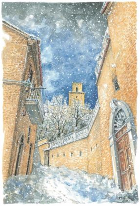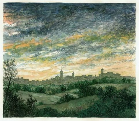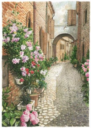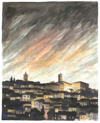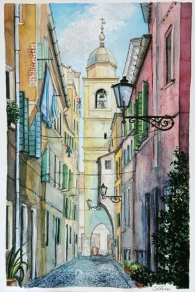 RIPATRANSONE – Definirli acquerelli è riduttivo perché le centoventi splendide opere di Eugenio Cellini, che dal 16 luglio al 15 agosto impreziosiscono la suggestiva Cripta di San Giovanni Battista di Ripatransone, sono molto di più. Sono “Paesaggi dell’anima”, come giustamente è stata intitolata l’esposizione, sono storie di vita. Attimi che diventano eterni attraverso la sapiente mano di un artista che ha il pregio di fermare il tempo grazie ad un sapiente uso dei colori, il tratto delicato ma al tempo stesso deciso, l’originalità degli scorci che propone e, soprattutto, quella sensibilità tipica di chi ama la propria terra e desidera renderle omaggio in un tripudio di luci e colori che sembrano prendere vita su carta. Trovarsi di fronte agli acquerelli di Cellini è un po’ come fare un viaggio attraverso i molteplici luoghi che lui ha visitato, respirarne l’atmosfera, percepirne la bellezza e rendersi conto di quanto è veritiera la considerazione di Vincent Van Googh il quale, in sintesi, definiva l’acquerello una cosa splendida per esprimere le distanze, dove tutto è circondato dall’aria e sembra poterla respirare.