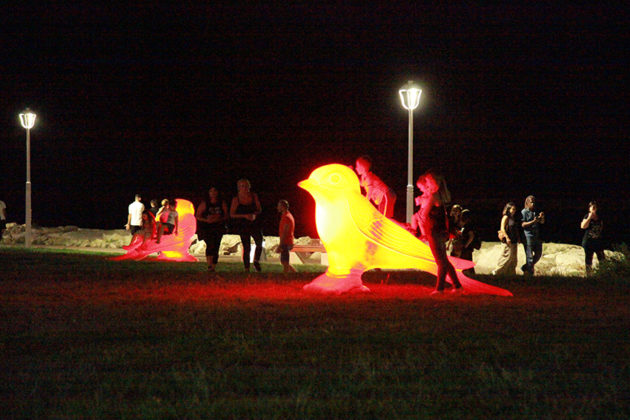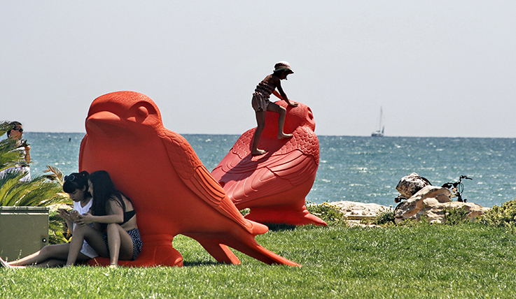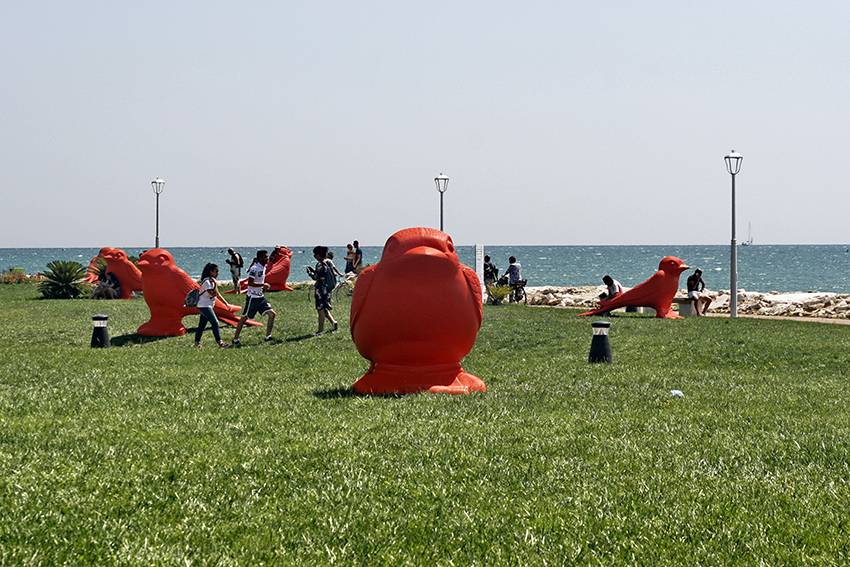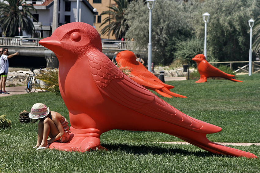 Questa premessa era doverosa per comprendere le motivazioni per cui parliamo soltanto adesso del collettivo “Cracking Art”, a clamori smorzati. Già perché questi giganteschi e variopinti animali inizialmente si erano trasformati, a loro insaputa, in un “caso politico”, un ennesimo espediente per il quale dirsene di santa ragione. E non solo. Sono state pronuniciate – e scritte – battute becere sullo stormo di rondini definite maliziosamente “uccelli” e addirittura “passere scopaiole” (Lupo Alberto docet). Le signore che poi hanno espresso un parere positivo, inevitabilmente sono state investite dalla più idiota delle battute: “ti piacciono gli uccelli”. Di problemi da risolvere la nostra città ne ha veramente tanti, ma nei giorni successivi l’inaugurazione, tutto sembrava ruotare intorno a questo grazioso ed ignaro stormo di rondini. Stessa sorte per Acquaviva Picena. Facebook, poi, si sa, amplifica la faccenda. Improvvisamente sono diventati tutti esperti d’arte.
