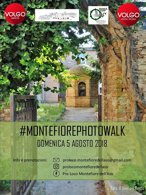 MONTEFIORE DELL’ASO – Appuntamento domenica 5 agosto per #montefiorephotowalk, alla scoperta del colle dei pittori. L’evento, organizzato dalla Pro Loco di Montefiore dell’Aso in collaborazione con Volgo Marche, Volgo Ascoli Piceno, l’Amministrazione Comunale e la Cooperativa Idrea, si svolgerà dalle ore 16 alle 19,30 in occasione della “Sagra della Frutta”, ed è aperto agli appassionati di fotografia che possiedono un account social, attraverso il quale condividere gli scorci e le curiosità del paese, uno dei Borghi più belli d’Italia. Per partecipare all’evento, completamente gratuito, occorre prenotare tramite i canali social facebook o instagram (Sagra della Frutta).