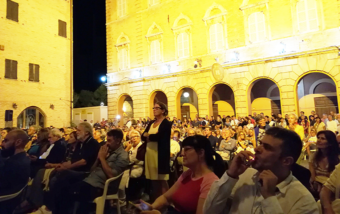 MONTEPRANDONE – Giunta ormai al termine, la rassegna culturale “Piceno d’Autore” non smette di stupire. É la folla delle grande occasioni – forse mai vista in simili proporzioni come commenta Mimmo Minuto – quella che ha accolto ieri il filosofo, commentatore di fatti politici e polemista Massimo Cacciari, in Piazza dell’Aquila a Monteprandone. Il tema conduttore dei cinque incontri è stato riproposto anche dall’ex-sindaco di Venezia, professore emerito presso l’Università San Raffaele di Milano, che ne ha dato una sommaria, seppure ragionata ed articolata, spiegazione. Di fronte agli interrogativi mossi dal presentatore della serata, l’avv. Silvio Venieri, sullo statuto epistemologico della scienza, sul suo impatto nelle nostre vite, sulla eterogenesi o filogenesi dei propri fini, sull’immanenza della coscienza (come determinazione morale) rispetto alla scienza, l’intellettuale veneziano ha tratteggiato delle linee di comprensione storico-filosofiche per un argomento che attanaglia il pensiero occidentale – dice lo stesso Cacciari – “da oltre tre secoli”. Premettendo che la scienza ha una via di comprensione dei fenomeni autonoma, “che sta sopra il suo oggetto”, essendo “una conoscenza ferma, stabile della realtà” nel suo complesso, essa pretende di andare all’essenza delle cose per dimostrale (atteggiamento scientifico tipico della nostra epoca e civiltà occidentale).