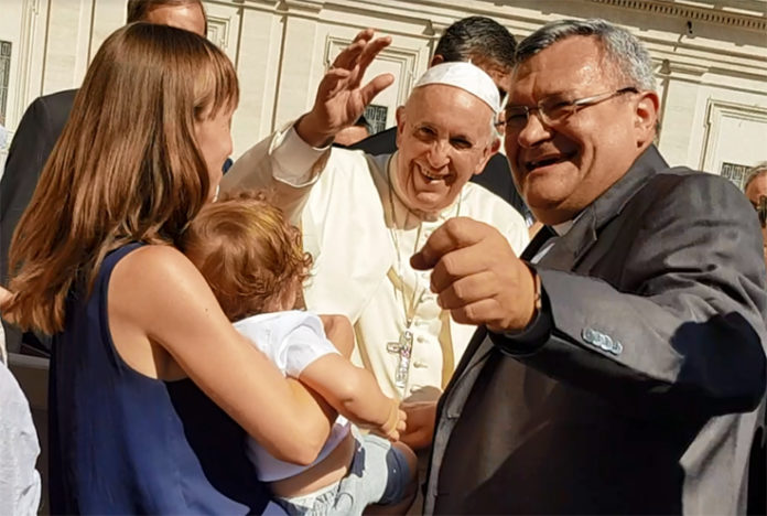 ROMA – Il “Meeting dei giornalisti cattolici e non”, dopo le prime quattro fortunate edizioni a Grottammare, approda a Roma, inaugurando una serie di tappe itineranti, di qui alla fine dell’anno. È stata proprio Piazza San Pietro, mercoledì 12 settembre, ad aprire l’appuntamento con la partecipazione all’udienza generale, al termine della quale, gli oltre 100 giornalisti provenienti da tutta Italia, sono stati salutati da papa Francesco. Don Giampiero Cinelli, membro del “comitato scientifico” del Meeting ha inoltre donato a Papa Francesco e alla Caritas di Roma un cesto di prodotti dei commercianti di Arquata del Tronto e del Piceno, territorio che soffre ancora delle ferite del terremoto.