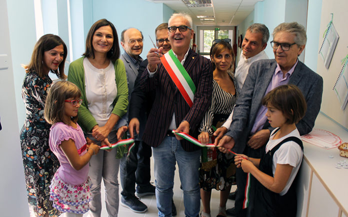 MACERATA – Un nido d’infanzia comunale nel parco più bello e antico di Macerata, ventuno posti che ampliano l’offerta formativa e di servizi della città, 460 mq di superficie interna ed esterna, locali luminosi e ben arredati attrezzatura moderna e funzionale. Sono queste le caratteristiche del nuovo servizio 0-3 anni, inaugurato sabato 15 settembre nel parco di Villa Cozza, realizzato dalla sinergia del Comune e dell’APSP- IRCR, grazie anche al progetto QUIsSI CRESCE! selezionato da Con i bambini nell’ambito del fondo per il contrasto della povertà educativa minorile. Il taglio del nastro è avvenuto alla presenza del sindaco Romano Carancini, del presidente dell’IRCR Giuliano Centioni, dell’assessore alla Scuola Stefania Monteverde, del dirigente Gianluca Puliti, delle educatrici dei nidi d’infanzia, della coordinatrice Marzia Fratini, insieme ad autorità, bambini e famiglie che hanno partecipato alla festa di apertura rallegrata dalla musica della Birbanda.