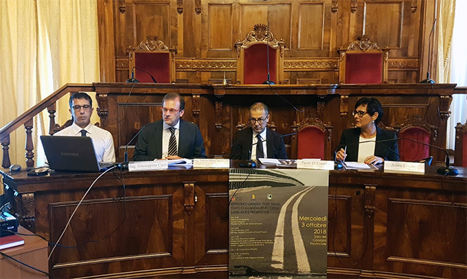 L’ing. Fulvio Maria Soccodato, Responsabile Assetto Infrastrutturale Rete per la Direzione Operation e Coordinamento Territoriale ANAS si è poi soffermato su numeri e dati riguardanti il processo di attuazione dei vari Piani stralcio Anas. Dopo 16 mesi dall’avvio operativo dei due stralci del Programma, per i 166 interventi compresi nel territorio della Provincia di Ascoli Piceno, è stata completata la progettazione esecutiva per appalto di tutti i progetti utili a risolvere le criticità, per un investimento di circa 156 milioni di euro. Per la realizzazione di 154 interventi, dei 166 previsti, sono stati appaltati circa 149 milioni di euro, pari al 94% dell’investimento programmato. Risultano in corso o ultimati o comunque superati, i lavori per la realizzazione di 111 interventi per un importo di circa 112 milioni di euro pari al 71% del totale.