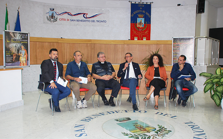 SAN BENEDETTO DEL TRONTO – Fervono i preparativi per la tradizionale festa del Patrono San Benedetto Martire. Quattro giorni di festa, dall’11 al 14 ottobre, in cui si alterneranno molteplici iniziative di carattere civile e religioso. Il fulcro della festività sarà il Paese Alto, ma l’evento non mancherà di coinvolgere l’intera cittadinanza. Le manifestazioni sono state presentate in Municipio dal sindaco Pasqualino Piunti, l’assessore alla cultura Annalisa Ruggieri, il consigliere comunale Pierfrancesco Troli, l’ex parroco del quartiere Paese Alto Tommaso Capriotti, il presidente dell’Associazione Culturale “Amici del Paese Alto” Italo Giuliani, il presidente del quartiere Enrico Rossetti, i quartieri di Porto d’Ascoli e le associazioni che collaborano per la buona riuscita della manifestazione. Da sottolineare, tra le manifestazioni civili, l’assegnazione del Gran Pavese Rossoblù e il concerto gratuito di Syria al Concordia per celebrare il decimo anno di riapertura del teatro. Per le celebrazioni, l’Amministrazione comunale ha messo a disposizione 15mila euro, ai quali si aggiungono i contributi degli sponsor.