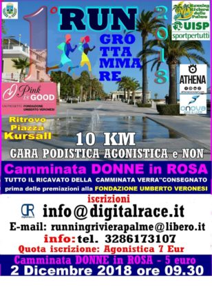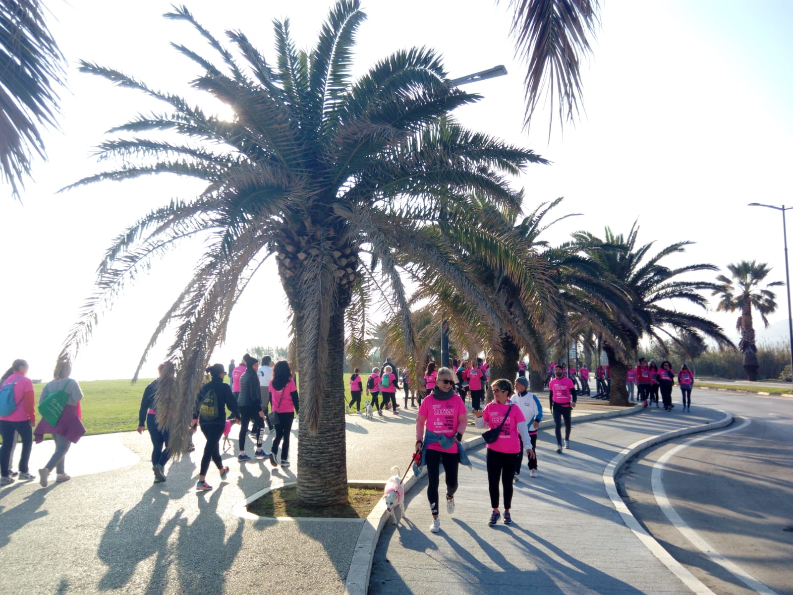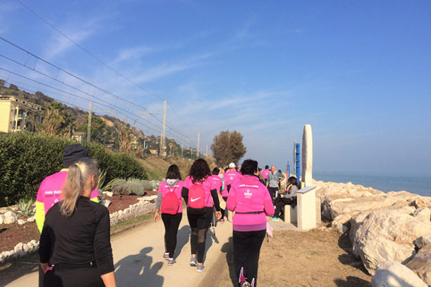 GROTTAMMARE – È una mattina inizialmente fredda quella di domenica 2 dicembre, ma non rigida. Con un sole che gradualmente emerge e si fa notare. C’è, si prende il suo spazio in un cielo inaspettatamente azzurro, appena velato qua e là. Una bella luce che osserva e dona piacevoli riflessi sulle tante maglie rosa. É un giorno particolare, dedicato ad un evento sportivo aperto a tutti e a scopo solidale. Si tratta della “Camminata Donne in Rosa”, organizzata a Grottammare con la collaudata competenza della società sportiva Running Riviera delle Palme. L’intero ricavato viene devoluto alla Fondazione Umberto Veronesi, fondata dall’omonimo e celebre oncologo che molto ha creduto nella ricerca a tutto campo e alla possibilità di guarire dalle neoplasie, in particolare il tumore al seno. Veronesi divulgava anche la cultura di un giusto stile di vita, sano nell’alimentazione attenta ai cicli produttivi, e in una opportuna attività sportiva, come questa.