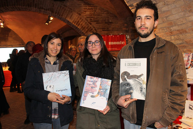 «Per noi gli allievi sono un po’ come dei brutti anatroccoli – ha detto il direttore di Ars in Fabula, Mauro Evangelista –  Il nostro sogno è quello di vederli spiccare il volo trasformati in splendidi cigni. Questa è la nostra missione da circa venti anni». E in splendidi cigni, come nel racconto di Andersen, si sono trasformati i tre illustratori che provengono dalla scuola di Ars in Fabula, Veronica Ruffato, Elena Ceccato, Marco Marinangeli , che espongono agli Antichi forni le loro illustrazioni, rispettivamente realizzate per gli editori Zoo Libri (Il brutto anatroccolo), Carthusia (L’usignolo) ed Orecchio Acerbo (Il coccodrillo).