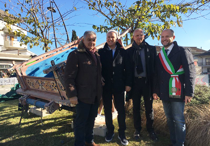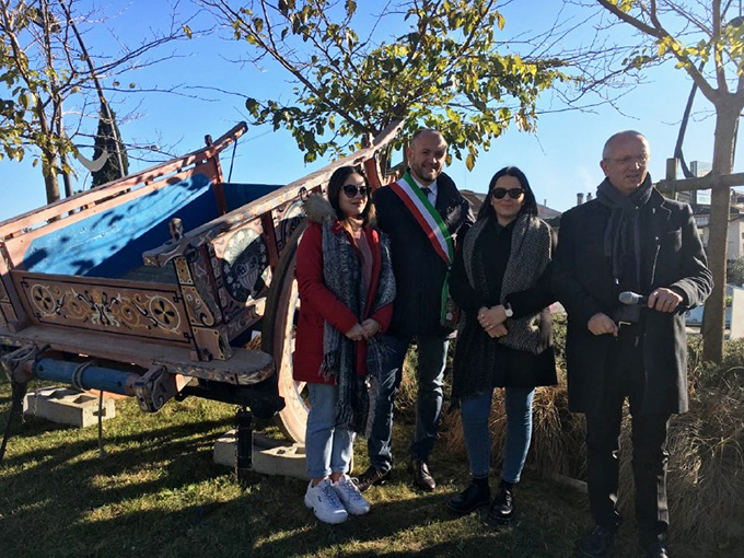 COLLI DEL TRONTO – Nella rotatoria di via Salaria è stato posizionato un carro agricolo, simbolo di Colli del Tronto, il paese dei Li Carrar. Nella mattinata del 15 dicembre il sindaco Andrea Cardilli ha inaugurato la rotatoria abbellita con l’antico mezzo che rappresentava il rapporto città-campagna nel sistema mezzadrile ed è il simbolo della storia dei carradori di Colli, artigiani costruttori di carri agricoli. Il carro è stato posizionato sulla rotatoria realizzata da Peppe Traini nel 2012, in cui è rappresentato nella sua completezza, il territorio di Colli del Tronto: la parte bassa, con pitosforo e lavanda, l’antica Salaria non asfaltata, con del brecciolino e la parte alta di Colli con piante di gelso, famose per bachicultura tradizionale, e le graminacee che rappresentano i campi di grano.