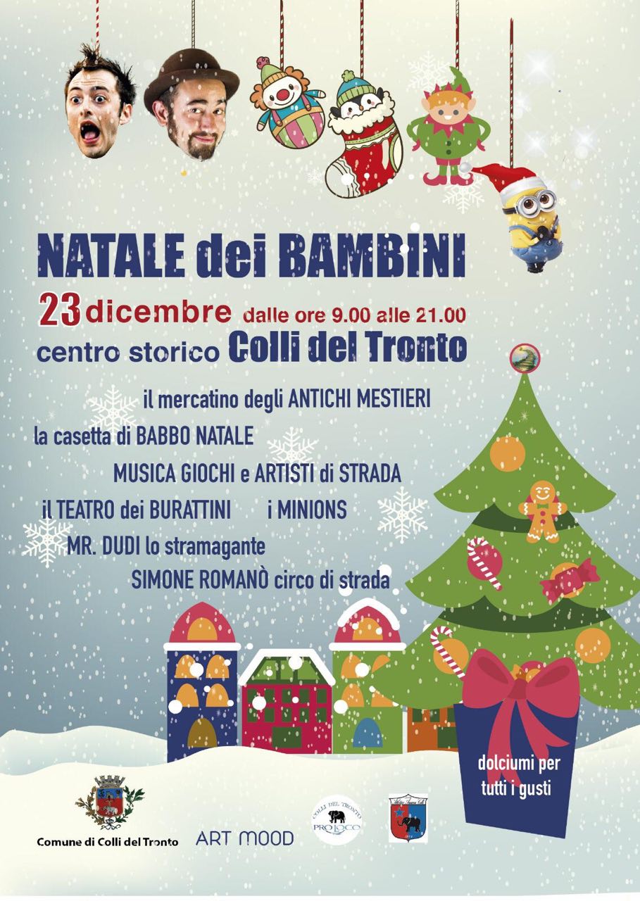 COLLI DEL TRONTO – Quest’anno a Colli del Tronto, per un’intera giornata, ci sarà il “Natale dei Bambini”. Domenica 23 dicembre chi si recherà nel centro storico, dalle ore 9 alle 21, potrà vivere l’emozione di visitare un villaggio natalizio, con Babbo Natale e i suoi elfi. L’evento è organizzato dall’Amministrazione comunale in collaborazione con L’Atletica Azzurra Colli guidata da Giovanni Fioravanti e avrà la direzione artistica dell’associazione Arte Mood di Domenico Sistilli. «Un’iniziativa che coinvolge in primis i 100 ragazzi dell’atletica e tutte le famiglie di Colli del Tronto, volta ad arricchire il centro storico del paese alto, nella speranza di rivitalizzarlo» commenta il sindaco Andrea Cardilli.