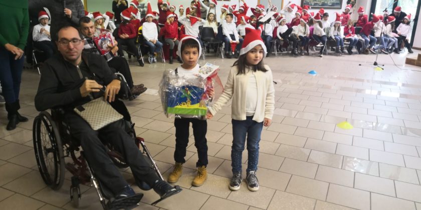 SAN BENEDETTO DEL TRONTO – Una mattina davvero speciale per il Cser-Centro Socio Educativo Riabilitativo Biancazzurro, quella trascorsa lunedì 17 dicembre. Alle ore 10,30, come per incanto, l’edificio si è tinto di rosso e di bianco, grazie a tutti gli alunni della Scuola Primaria Ragnola, che, con i loro cappellini da Babbo Natale, hanno creato una stupenda atmosfera natalizia. Il susseguirsi delle poesie, dei canti, della pièce teatrale, ha allietato gli ospiti del Centro, che hanno scandito la loro gioia con il festoso battito delle mani. L’emozione degli alunni, che hanno eseguito anche un suggestivo canto in latino, non ha affievolito l’intensità del loro messaggio: ricordare a tutti che “Sarà Natale se ami, se doni, se stai con chi è solo, se stringi le mani a chi soffre”.