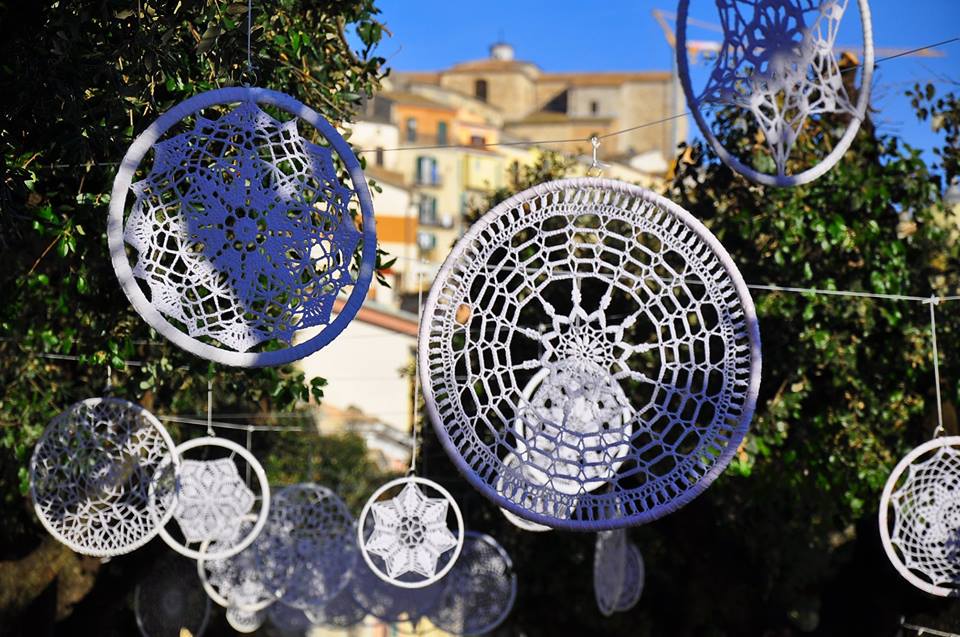 L’iniziativa è stata promossa dall’associazione triventina “Un filo che unisce”, cui aderiscono trecento donne e un uomo con la passione per l’uncinetto, una tipicità tradizionale domestica trasmessa, come un legante simbolico da una generazione alla successiva. Infatti fra le realizzatrici dell’Albero di Natale, come pure di tutti i bianchi decori tondi, merlettati come le trame di fiocchi di neve, ad ornare le vie cittadine, sono presenti tre generazioni: le nonne, le mamme, le figlie. Unite dal “filo” della tradizione, simbolico dei valori del focolare, che uniscono profondamente la famiglia.