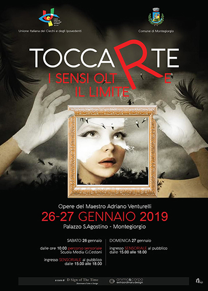 MONTEGIORGIO – Arte da toccare, con una mostra al buio in cui a guidarci saranno gli altri sensi. Mentre persone non vedenti, esperte nell’esplorazione tattile di oggetti preziosi, ci accompagneranno alla scoperta di una bellezza inedita: quella che passa dalle dita per arrivare prima alla testa e poi al cuore. Si chiama “ToccaRte – i sensi oltre il limite” e aprirà i battenti sabato 26 gennaio nel Palazzo Sant’Agostino di Montegiorgio la mostra, a ingresso gratuito, promossa dall’Unione italiana ciechi e ipovedenti di Ascoli Piceno e Fermo, dalla società “Anima & Corpo” e dal Comune. Presentata nel suo primo format nell’ambito di un evento culturale più vasto promosso insieme alla galleria d’arte “D Sign Of The Time”, la mostra, che resterà aperta per due giorni, è imperniata sulle opere del Maestro Adriano Venturelli di Modena ed espone le serie storiche “I Materici” (1984/1989) e “Anima e Corpo della Pittura” (1979/1985).