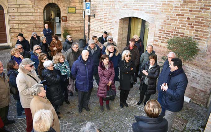 MONTEPRANDONE – Dal chiostro di San Giacomo, alla Chiesa Santa Maria delle Grazie, dal Museo dei Codici alla Chiesa di San Niccolò e i luoghi più suggestivi del Centro Storico di Monteprandone sono stati meta nella giornata di ieri, domenica 3 febbraio, di un gruppo di 55 soci de “Le Cento Città”, associazione culturale marchigiana che ha quale obiettivo la valorizzazione del patrimonio storico regionale. Organizzata dal Comune di Monteprandone, la giornata è iniziata presso il Santuario di San Giacomo della Marca dove gli associati sono stati accolti da Padre Silvio Capriotti, Padre Guardiano del Convento e dall’assessore Daniela Morelli che ha curato il programma della visita.