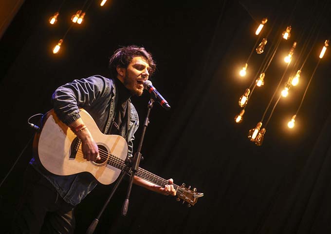 Michele Tiso comasco, classe ’92, su palcoscenico della Filarmonica ha offerto al pubblico i brani: “Bamby”, “Artemisia”, dedicata alla sua città natale, Como e “25 aprile” il giorno del suo compleanno. Michele Tiso fonda i Fantasminglesi, registrando l’EP Vergine in Gemelli, semifinalista dell’Arezzo Wave Festival 2015, ha frequentato l’accademia di musica elettronica, dal 2018 è sulle principali piattaforme digitali, diffonde il doppio singolo 45 Giri, è stato secondo in classifica come miglior Autore del concorso Genova Per Voi di Universal Musica.