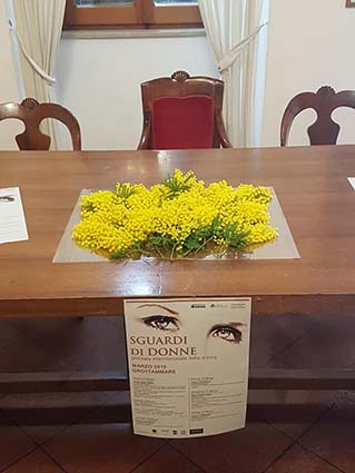 Tutti concordi nell’affermare che non bisogna assolutamente “abbassare la guardia” di fronte agli episodi di intolleranza nei confronti delle differenze che, purtroppo, spesso portano a sgradevoli commenti sessisti espressi con volgarità nei confronti delle donne che esprimono il proprio parere riguardo argomenti di attualità. Un esempio per tutti, la cantante Emma Marrone offesa dal consigliere leghista Galli per aver “osato” dire liberamente, durante un suo concerto, di aprire i porti. Motivo per cui è bene organizzare iniziative come “Sguardi di donne” perché, ora più che mai, tracciano una traiettoria che non bisogna mai perdere di vista in tempi agitati e discriminatori come quelli che stiamo vivendo. La conferenza è stata allietata da un omaggio floreale tradotto in rametti di mimose donati ai presenti dal dott.Americo Marconi, il quale ha sottolineato il valore simbolico di questo fiore giallo che, secondo la filosofia orientale, è sinonimo di “rinascita, rinnovamento”.