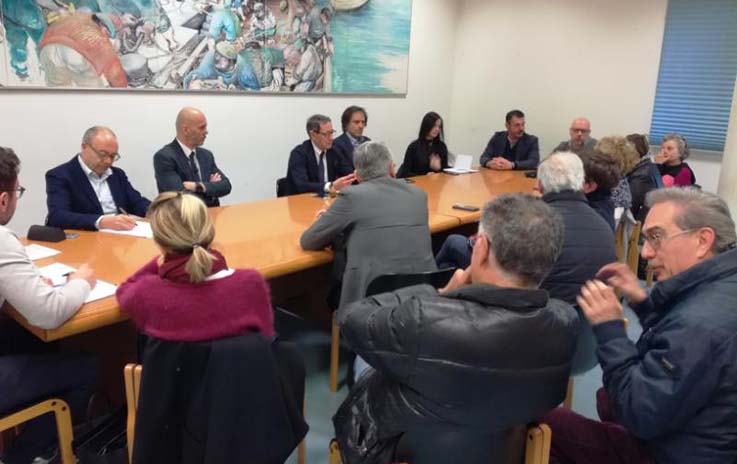 SAN BENEDETTO DEL TRONTO – Si è svolta nella mattinata odierna la riunione del tavolo del Turismo. Inizialmente convocata per il 19 febbraio scorso, la riunione è stata poi rinviata per il lutto inerente la scomparsa del dirigente Farnush Davarpanah. All’ordine del giorno, un’analisi dei servizi estivi di trasporto pubblico locale e della guardia medica turistica. Oltre al sindaco Pasqualino Piunti, all’Assessore al Turismo Pierluigi Tassotti, al Presidente della Commissione Attività Produttive e Turismo Carmine Chiodi e al consigliere Emidio Del Zompo, erano presenti una nutrita delegazione dell’Associazione Albergatori Riviera delle Palme e rappresentanti di Confcommercio, Federalberghi e Confesercenti Turismo.