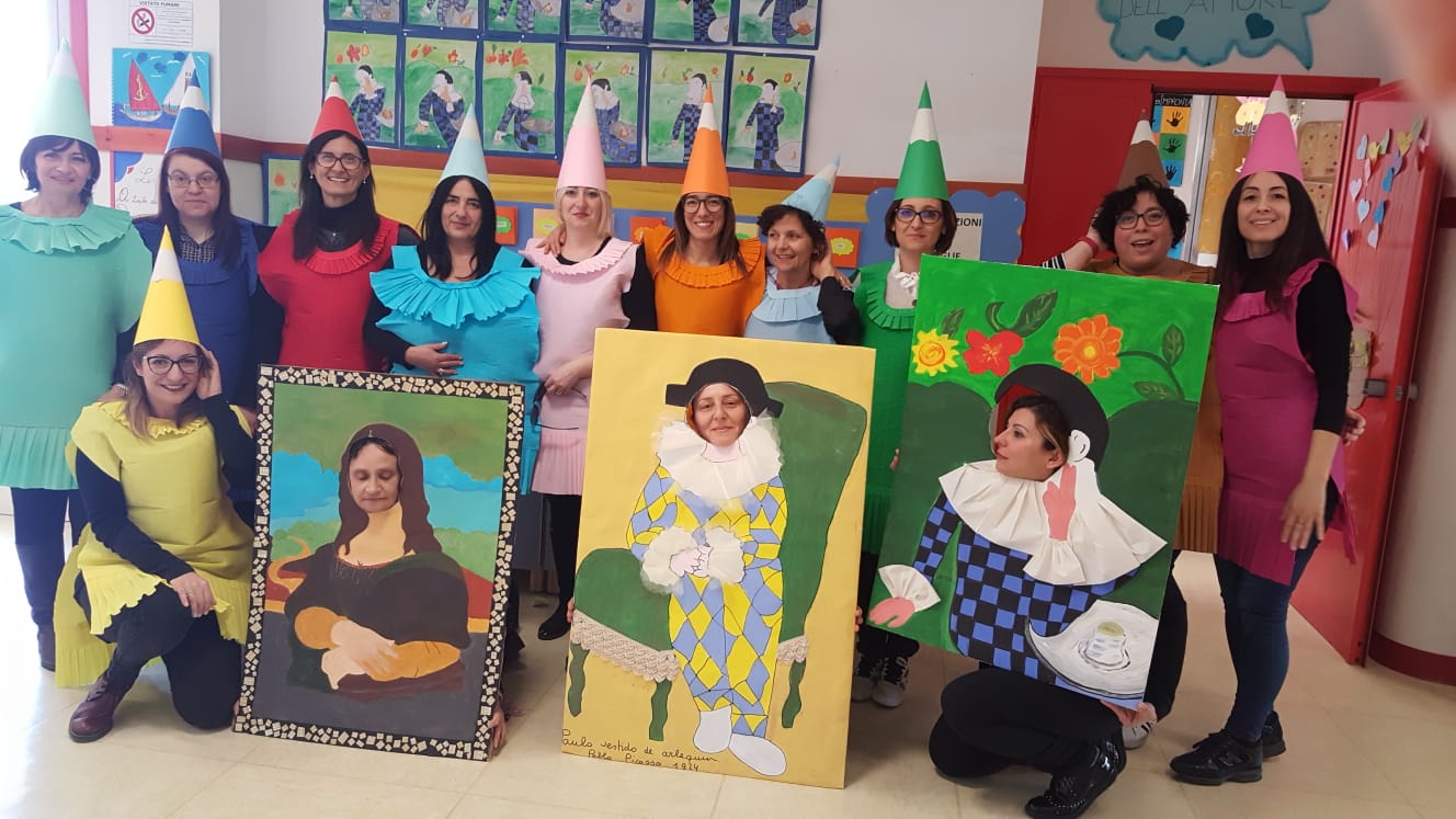 i bambini della Scuola dell’Infanzia “A.Marchegiani” -Ic Centro, mascherati da pittori, hanno vivacizzato il plesso con una sfilata in occasione del giovedì grasso. Il tema della sfilata è stato mutuato dal progetto educativo-didattico triennale della Scuola dell’Infanzia: “Arte, bellezza, natura…che emozione”. I piccoli pittori hanno visitato le classi della Scuola Primaria Marchegiani, per la continuità Infanzia-Primaria , successivamente la sezione Primavera Comunale “Il Girasole” per valorizzare anche il percorso continuità 0-6, portando allegria ai loro amici grandi e piccini. Nelle settimane precedenti, infatti, avevano realizzato con carta crespa, cartone e colori a tempera, tanti variopinti e fantasiosi costumi da piccoli “Pittori” e, insieme ai loro indispensabili “Colori” (le maestre), hanno poi dipinto le emozioni realizzando delle vere e proprie opere d’arte che hanno mostrato orgogliosi. Con l’arte e la pittura del genio italiano Leonardo Da Vinci hanno conosciuto il capolavoro “La Gioconda” e “L’Arlecchino”, mentre grazie alla riproduzione delle opere “L’Arlecchino pensoso” e “L’Arlecchino” di Pablo Picasso si sono tuffati con entusiasmo nell’arte del Novecento. L’atelier d’Arte, ancora attivo, riserverà di certo altre piacevolissime sorprese.