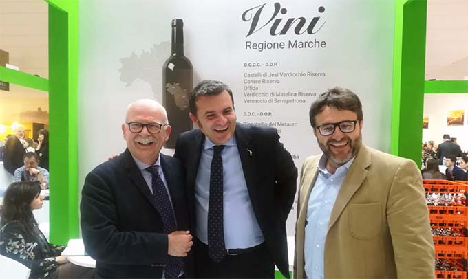 MARCHE – Con la visita del Ministro delle Politiche Agricole, Alimentari e Forestali Gian Marco Centinaio si è conclusa la partecipazione del Consorzio Vini Piceni a ProWein 2019, in programma a Düsseldorf dal 17 al 19 marzo, primo scenario internazionale della stagione per i vini del Piceno. Il Ministro ha visitato lo stand realizzato con la regione Marche tramite il progetto promozionale PSR, dove erano collocate in maniera collettiva la maggior parte delle aziende vinicole della regione e dove ha potuto constatare l’entusiasmo dei produttori, dopo i recenti numeri pubblicati che attestano una crescita dell’export regionale vicina al 10 % «Sono entusiasta della visita del nostro Ministro che ha potuto constatare la grande partecipazione dei nostri soci – ha dichiarato il presidente del Consorzio Vini Piceni, Giorgio Savini – Inoltre abbiamo avuto l’occasione di presentare le nuove annate dell’Offida Pecorino e Passerina, in commercio solo dal 1 marzo, che insieme al Rosso Piceno con il Montepulciano, fanno parte delle denominazioni realizzate con i nostri vitigni autoctoni, vera forza della vitivinicoltura picena. Ringrazio il Ministro per la sensibilità non comune nei nostri confronti, che ci rilancia al prossimo importante impegno che sarà il Vinitaly a Verona dal 7 al 10 aprile».
