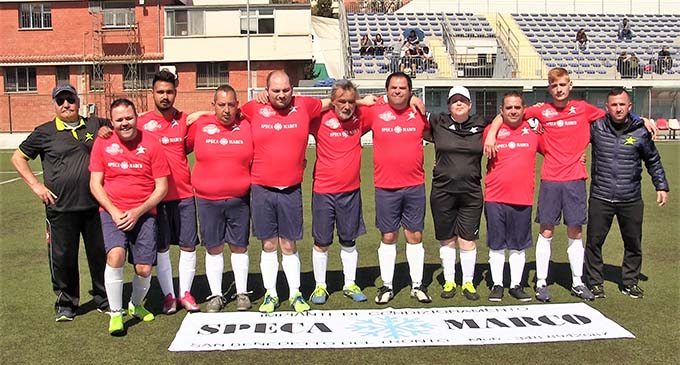 SAN BENEDETTO DEL TRONTO – Sono state disputate a Pescara la settima e l’ottava giornata di campionato di “Quarta Categoria FIGC” Abruzzo (categoria di calcio a 7 riservata ad atleti “for special”). In questa tappa la Stella del Mare si è presentata con quasi tutti i suoi effettivi (assenti solo De Signoribus e Filipponi) conquistando altri 3 punti utili alla classifica, frutto di una vittoria su due gare ufficiali disputate. La formazione sambenedettese “IV Categoria for special” è nata grazie alla collaborazione con il centro diurno “Il Sollievo” e il DSM (dipartimento di salute mentale) di Ascoli Piceno e San Benedetto del Tronto. Nella prima gara i giallo-oro allenati da Walter Filippone hanno battuto nettamente sul campo la formazione degli Squali Pescara. Il risultato finale di 3-2 potrebbe trarre in inganno invece, i ragazzi rivieraschi hanno dominato per tutta la gara gli avversari con tanti goal mancati solo per un soffio. Le reti sono state realizzate da Stefan Lala e Cinciripini. Ottima la prova offerta da entrambi in gran spolvero. Inoltre va sottolineato il contributo fatto sempre di tanta sostanza da parte di Fratta e Angelini.