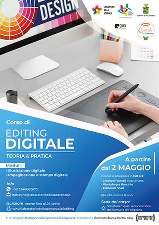 Per iscriversi compilare il form all’indirizzo: www.laboratoriodellasperanza.it/editing Info: botteghe@laboratoriodellasperanza.it oppure cell: 324.6662673 (anche SMS o WA)