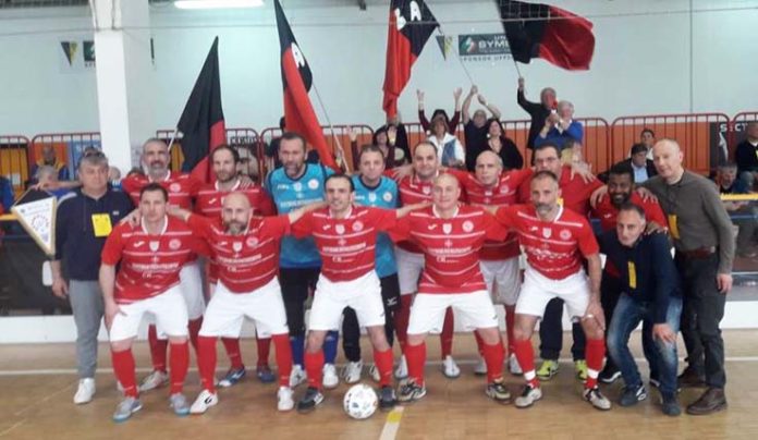 SAN BENEDETTO DEL TRONTO – Dopo tre anni di attesa, la Sordapicena di San Benedetto fa suo per la sesta volta lo scudetto del campionato nazionale Fssi di calcio a 5 over 40, le cui finali si sono svolte a Modena. Il cammino dei rossoblù è iniziato ai quarti contro il Gss Patavini Padova, sconfitti con un nettissimo 8-1, per poi proseguire in semifinale dove hanno affrontato l’Ens Bologna. Gara nervosa con parecchi momenti di tensione tra i giocatori in campo, ma alla fine i sambenedettesi la spuntano con il punteggio di 3-1. In finale la squadra del tecnico Costantino Merlini se l’è dovuta vedere con i padroni di casa del Gss Modena che passavano subito in vantaggio, ma anche se a fatica la Sordapicena chiudeva il primo tempo sul parziale di 1-1.