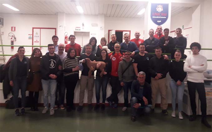 SAN BENEDETTO DEL TRONTO – Il cane, si sa, è il migliore amico dell’uomo e si  farebbe di tutto per tutelarlo. Ci sono poi cani speciali che intervengono nelle situazioni di emergenza e di pericolo. Veri e propri soccorritori che meritano un’attenzione ancora maggiore. È in quest’ottica che si inserisce il 1° “Corso formativo di primo soccorso cinofilo”, nato dalla collaborazione tra la Fisa e l’Ospedale Veterinario Universitario Didattico (Ovud) – Scuola di Bioscienze e Medicina Veterinaria dell’Università di Camerino. Un alto momento formativo teorico-pratico, culminato con la prova di Vls (Veterinary life support) su apposito manichino, organizzato dallo staff medico dell’Ovud e coordinato dal prof. Andrea Spaterna, che rientra nell’ambito della formazione per le unità cinofile della Fisa e  che ha visto una massiccia partecipazione degli operatori cinofili della  Federazione.