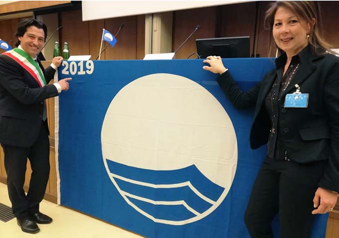 GROTTAMMARE – Bandiera Blu numero 21 per la Città di Grottammare. Questa mattina a Roma, nella Sala Convegni del Consiglio Nazionale delle Ricerche, si è svolta la cerimonia di presentazione delle Bandiere Blu 2019, nel corso della quale sono stati premiati 183 Comuni (175 nel 2018). All’incontro, convocato dalla Fee – Foundation for Environmental Education, l’organizzazione internazionale no-profit, con sede in Danimarca, che promuove le buone pratiche per l’educazione ambientale, hanno preso parte il sindaco Enrico Piergallini e l’assessore alla sostenibilità ambientale Alessandra Biocca: «Conseguire per il ventunesimo anno la Bandiera Blu non significa potersi fermare. Anche oggi nella grande sala piena di Comuni virtuosi abbiamo raccolto idee per migliorare ancora di più il nostro ambiente e i nostri servizi. Se questo riconoscimento non svolgesse, per chi lo consegue una funzione propositiva di stimolo e di visione, sarebbe una semplice bandiera di tessuto».