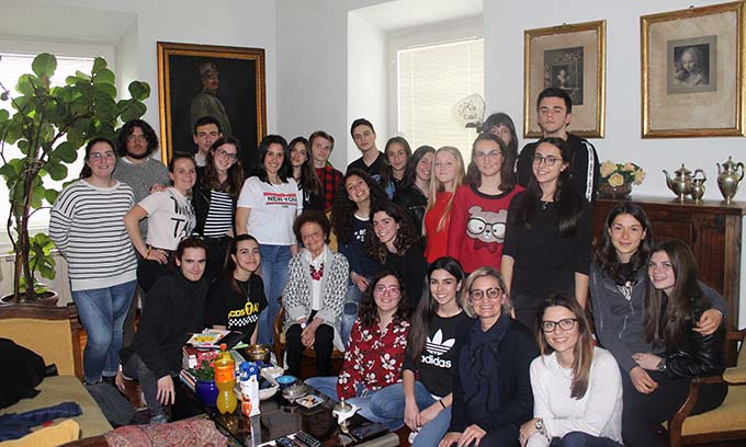 SAN BENEDETTO DEL TRONTO – “Vi aspetto a casa mia”. Un invito prezioso quello che la scrittrice Lia Levi, autrice del romanzo “Questa sera è già domani” vincitore del Premio Strega Giovani 2018, aveva rivolto agli studenti del Liceo Scientifico Rosetti di San Benedetto del Tronto che danno vita al Club dei Lettori. La scrittrice, che i ragazzi avevano avuto l’opportunità di conoscere alla premiazione presso la Sala della Regina di Palazzo Montecitorio, è stata successivamente ospite dell’istituto il 22 ottobre scorso ed è stato proprio in quest’ultima occasione che la Levi stessa ha voluto esplicitamente invitare i ragazzi del Club dei lettori ad andare a trovarla a casa sua, a Roma. Così gli studenti, accompagnati dalla professoressa Adelia Micozzi, docente referente per l’attività del Club, lo scorso 29 aprile si sono trovati tutti seduti nel salotto della scrittrice a parlare di libri, scrittura, emozioni, sentimenti, idee.