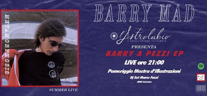 SAN BENEDETTO DEL TRONTO – Nuovo appuntamento con l’arte per l’Associazione Culturale L’Astrolabio di San Benedetto del Tronto, ma questa volta in una forma inconsueta, quella musicale. Non una mostra personale quindi, né una collettiva, bensì un concerto – il concerto – di Barry Mad, nome d’arte di Lorenzo Giustozzi e il lancio del suo Ep “Barry Mad a pezzi ”, prodotto da Andrea Chiarini. L’evento si terrà domenica 2 giugno presso il locale Room 76 di Via Paolini a San Benedetto del Tronto, inizierà alle ore 18 con la mostra di illustrazioni dello stesso Giustozzi – nella veste di disegnatore è conosciuto e apprezzato con lo pseudonimo di Esté – accompagnata dalla selezione musicale indie a cura di Marco Fazzi, per entrare poi nel vivo con il concerto alle ore 21.