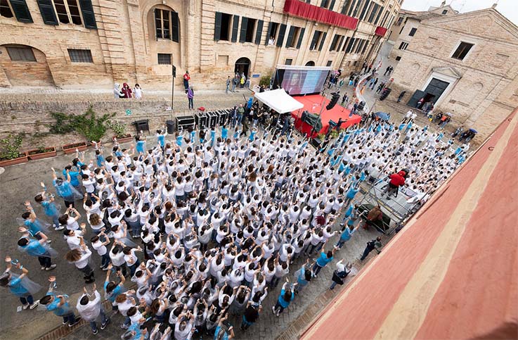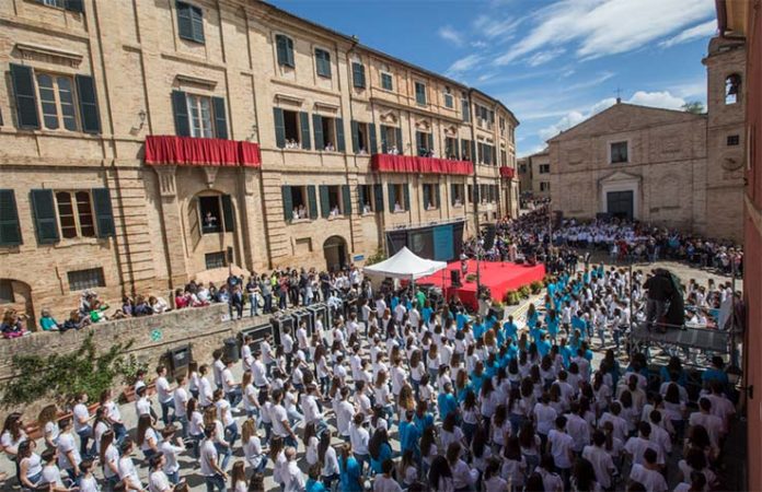 RECANATI – Una festa della poesia che ha attraversato tutto il Paese. Questo è stato “#200infinito”, la giornata dedicata alle celebrazioni per i duecento anni de “L’Infinito” di Giacomo Leopardi. Migliaia di studenti e cittadini si sono ritrovati in tutta Italia, in piazze, strade, chiostri, istituti scolastici, per unirsi “a distanza” alla Piazzuola del Sabato del Villaggio di Recanati dove oltre 2.800 ragazzi, insieme al Ministro Marco Bussetti e a Olimpia Leopardi, alle ore 11.30 hanno recitato insieme alcuni dei versi più conosciuti e amati della letteratura italiana. Non solo una lettura collettiva e simultanea. “L’Infinito” è stato omaggiato con danze, canti, performance artistiche, flash mob. Gli studenti italiani hanno potuto scoprire il valore della lirica e condividerlo con la propria comunità scolastica e con le loro famiglie. Hanno fatto rivivere nel presente versi senza tempo.