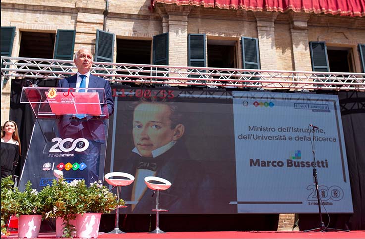 «Oggi è un giorno di grande festa per tutte le scuole d’Italia, anzi una festa dell’Italia realizzata dalle scuole, da voi ragazzi e dai vostri docenti – ha dichiarato il Ministro Marco Bussetti -. Ho fortemente voluto queste celebrazioni perché rendere omaggio a Leopardi e al suo idillio più famoso significa rendere omaggio al nostro Paese, alla nostra civiltà, alla nostra cultura e tradizione. “L’Infinito” è un punto di riferimento imprescindibile nel percorso formativo che i nostri giovani portano avanti da generazioni nell’iter scolastico. È stato veramente un piacere, oltre che un grande successo, poter stimolare e suscitare riflessione critica, creatività ed espressività degli studenti. Abbiamo il dovere culturale e civile di conoscere il nostro passato, di custodirlo, di valorizzarlo. E di farlo rivivere nel nostro presente, come abbiamo fatto qui oggi a Recanati e nelle altre Regioni, rinnovandone la parola e il messaggio».