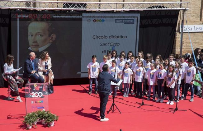 «Ragazzi, siete il futuro e avete davanti a voi il meraviglioso cammino della vita che sarà emozionante e bellissimo ma, come inevitabilmente accade, troverete anche degli ostacoli. – ha aggiunto Olimpia Leopardi, rivolgendosi agli studenti in piazza – Qui ci aiutano Giacomo e il meraviglioso messaggio che ci ha regalato con “L’lnfinito”. I limiti devono servire non per fermarci ma per insegnarci a guardare oltre. L’anima immagina ciò che è precluso allo sguardo e così ci permette di vedere le infinite possibilità che abbiamo dentro di noi. Quindi, ragazzi, vi lascio con l’augurio di non permettere mai alla realtà di sopraffare i vostri sogni». La manifestazione è stata organizzata dal Ministero dell’Istruzione, dell’Università e della Ricerca, nata da un’idea di Olimpia Leopardi, realizzata con Casa Leopardi, in collaborazione con la Rai e con il Comune di Recanati.