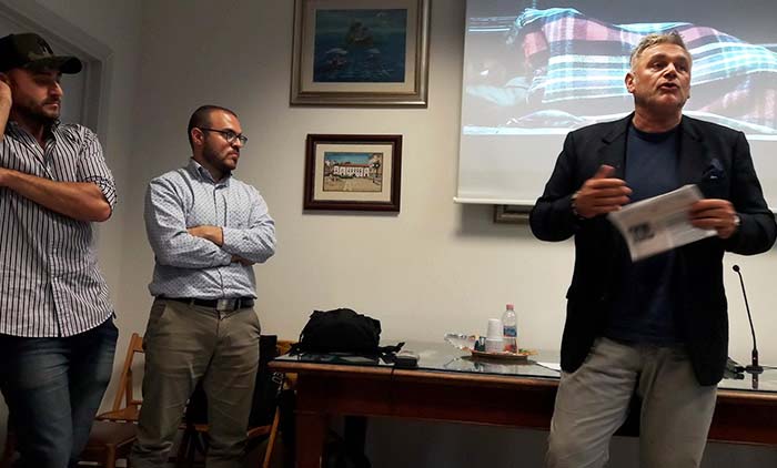 SAN BENEDETTO DEL TRONTO – C’era anche una delegazione del Liceo Scientifico “Benedetto Rosetti” all’incontro con i registi Giacomo Cagnetti e Rovero Impiglia che, ieri pomeriggio, sono stati i protagonisti dei “Mercoledì del Circolo”. I due professionisti hanno parlato dei loro lavori, opere che spesso gli sono valse importanti riconoscimenti di carattere anche internazionale. E sono stati sempre loro a girare il cortometraggio “Il Profumo del Mare”, un’opera musicata da Luigi Pulcini che mostra la città in maniera inedita attraverso un suggestivo viaggio dove memoria e modernità diventano un’unica cosa. Il cortometraggio di Cagnetti e Impiglia ha rappresentato la città di San Benedetto all’Expo 2015.  Il prossimo appuntamento è per mercoledì 5 giugno con il prof.Giancarlo Brandimarti che guiderà la platea in un viaggio attraverso la storia sambenedettese. L’appuntamento è alle 17 nella sede del Circolo dei Sambenedettesi, in via Bragadin, 1, a San Benedetto.