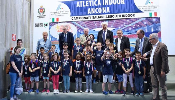 ANCONA – Una mattinata di grande festa, divertimento e naturalmente tanto sport per la giornata conclusiva di “Marche in movimento con lo sport di classe”, l’innovativo progetto di potenziamento dell’attività motoria nella scuola primaria promosso e finanziato da Coni e Regione Marche, attraverso i fondi Asur Marche, per circa un milione di euro, e che vede la collaborazione di Miur, Comitato paralimpico (CIP) e Centro Sportivo Italiano (CSI). Oltre 600 i bambini provenienti dalle scuole elementari di tutta la regione, una scuola in rappresentanza di ogni provincia, che dalle prime ore della mattina sono scesi in campo ad Ancona – tra Palaindoor, “Italico Conti” e “Nelson Mandela” – cimentandosi nei giochi e negli esercizi imparati durante un anno di progetto grazie ai loro insegnanti ed ai tutor del Coni. Tutto all’insegna del divertimento più che dell’agonismo: non a caso tutti i bambini sono stati premiati con le medaglie di “Marche in movimento con lo sport di classe” al termine della manifestazione. I volti felici e sudati dei bambini e quelli soddisfatti degli insegnanti nonché la voglia manifestata di riprendere l’attività il prossimo anno scolastico sono stati il segno evidente dei risultati importanti e positivi raggiunti dal programma, unico in Italia. I dati scientifici saranno poi divulgati in un prossimo convegno, frutto dei monitoraggi effettuati da Coni e Csi.
